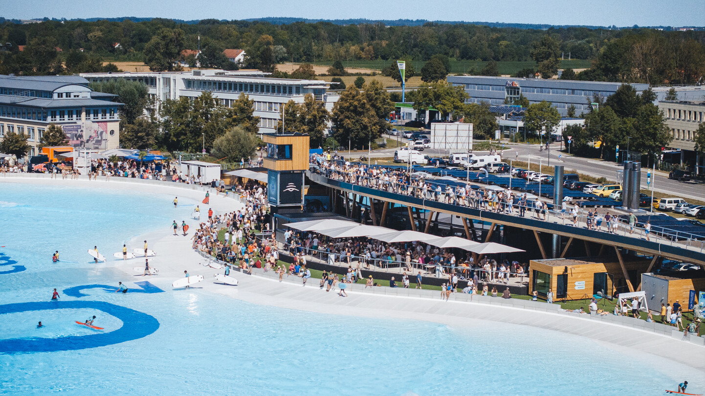 Die Freizeitanlage ist viel mehr als nur ein Wavepool für Surfer*innen: Ein Strandbereich mit großzügigen Liegeflächen, diverse Eventflächen und das moderne Gastronomie-Konzept sorgen für eine hohe Aufenthaltsqualität.