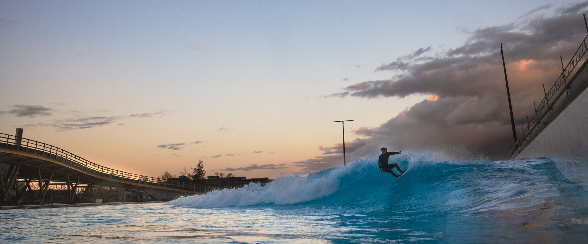 Im Pointbreak-Modus laufen die Wellen über die gesamte Länge des Pools am Wellengenerator entlang.